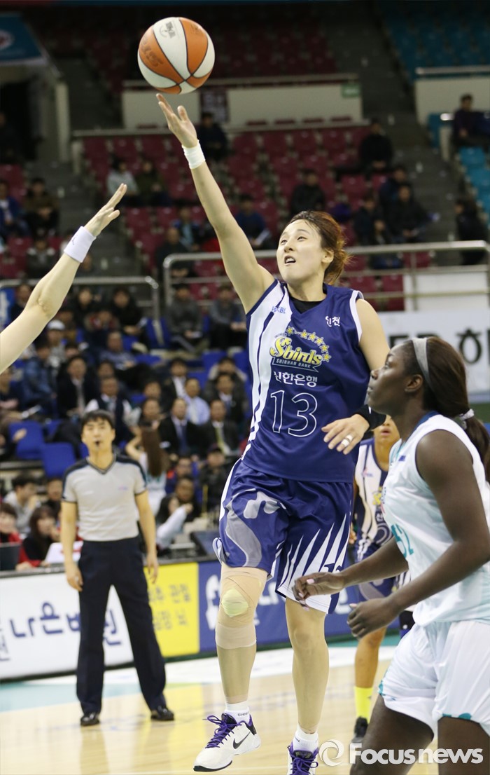 (부천=포커스뉴스) 8일 부천체육관에서 열린 2015-2016 여자프로농구 KEB하나은행-신한은행 경기에서 신한은행 김단비가 레이업슛을 시도하고 있다.