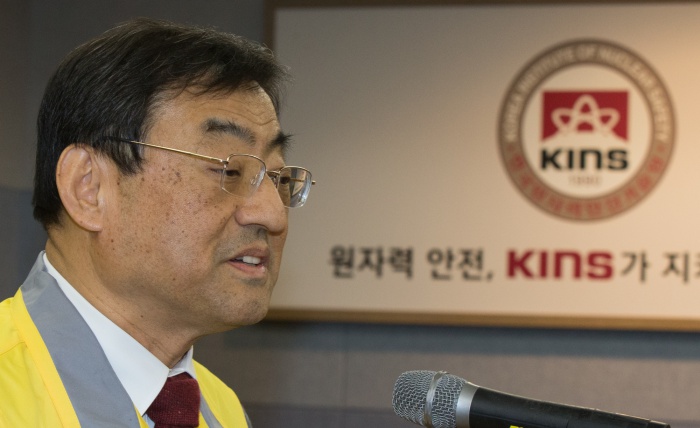 (대전=포커스뉴스) 8일 저녁 대전 유성구 한국원자력안전기술원 중회의실에서 김무환 한국원자력안전기술원장이 북한 핵실험 이후 반사성핵종 탐지·분석 결과 브리핑을 하고 있다.