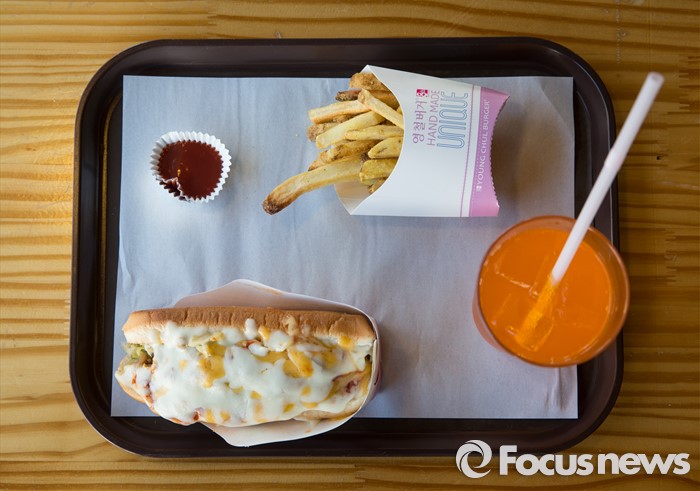(서울=포커스뉴스)8일 오전 서울 성북구 '영철버거'에서 이영철 사장이 만든 '치즈 스트리트 버거' 세트. 고려대 앞 명물로 꼽히는 '영철버거'가 최근 경영난으로 문을 닫았다가, 고려대를 다녔던 학생들이 영철버거와의 추억을 잊지 못해 십시일반 도와 가게를 옮겨 재오픈 했다.