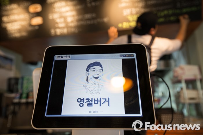 (서울=포커스뉴스)8일 오전 서울 성북구 '영철버거'에서 아르바이트생이 메뉴를 고치고 있다. 고려대 앞 명물로 꼽히는 '영철버거'가 최근 경영난으로 문을 닫았다가, 고려대를 다녔던 학생들이 영철버거와의 추억을 잊지 못해 십시일반 도와가게를 옮겨 재오픈 했다.