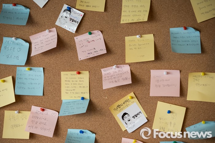 (서울=포커스뉴스)8일 오전 서울 성북구 '영철버거' 낙서판에 붙어 있는 손님들의 메시지. 고려대 앞 명물로 꼽히는 '영철버거'가 최근 경영난으로 문을 닫았다가, 고려대를 다녔던 학생들이 영철버거와의 추억을 잊지 못해 십시일반 도와 가게를 옮겨 재오픈 했다.