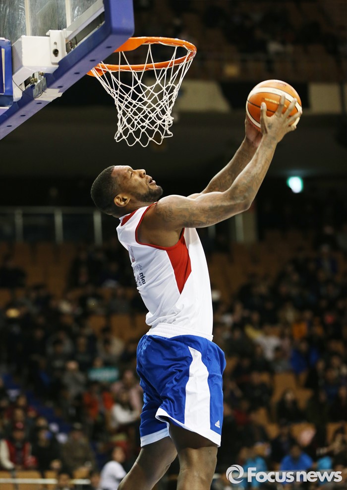 (서울=포커스뉴스) 10일 서울 잠실실내체육관에서 열린 2015-2016 프로농구 올스타전 덩크슛 콘테스트 예선에서 맥키네스가 백덩크슛을 구사하고 있다.