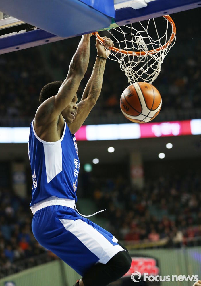 (서울=포커스뉴스) 10일 서울 잠실실내체육관에서 열린 2015-2016 프로농구 올스타전에서 주니어팀의 조 잭슨이 투핸드 덩크슛을 성공시키고 있다.