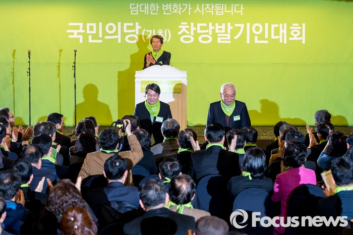 (서울=포커스뉴스) 안철수 국민의당 의원과 김한길 국민의당 의원이 10일 오후 서울 종로구 세종문화회관 세종홀에서 열린 '국민의당 창당발기인대회'에 자리해 발기인들에게 인사하고 있다.