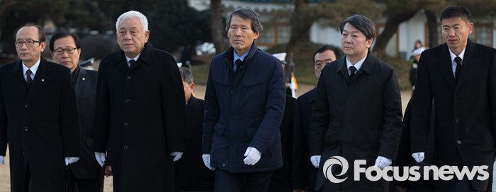 (서울=포커스뉴스) '국민의당' 창당을 추진하는 안철수(오른쪽 두번째부터) 의원, 한상진 국민의당 공동창당준비위원장, 김한길 의원이 11일 오전 서울 동작구 국립서울현충원을 방문해 현충탑으로 향하고 있다.