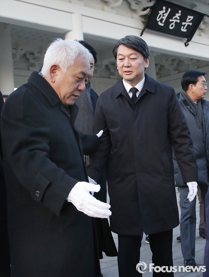 (서울=포커스뉴스) '국민의당' 창당을 준비중인 안철수, 김한길(왼쪽) 의원 등이 11일 오전 동작구 국립서울현충원 현충탑을 참배한 뒤 버스를 타기 위해 이동하고 있다.