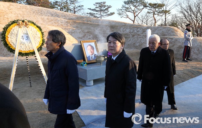 (서울=포커스뉴스) '국민의당' 창당을 추진하는 김한길(오른쪽부터), 안철수 의원과 한상진 공동창당준비위원장이 11일 오전 서울 동작구 국립서울현충원 故 김영삼 전 대통령 묘역을 방문해 참배를 마치고 이동하고 있다.