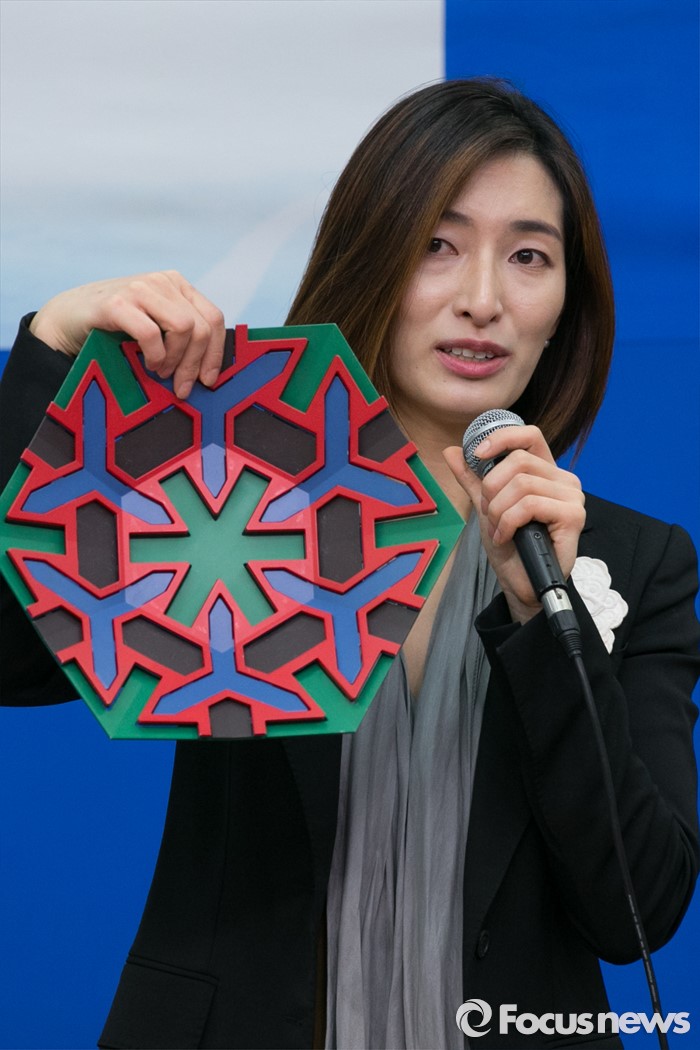 (서울=포커스뉴스) 11일 오후 서울 여의도 국회 더불어민주당 당대표회의실에서 김빈 디자이너가 입당 기자회견을 마치고, 자신의 작품을 설명하고 있다.
