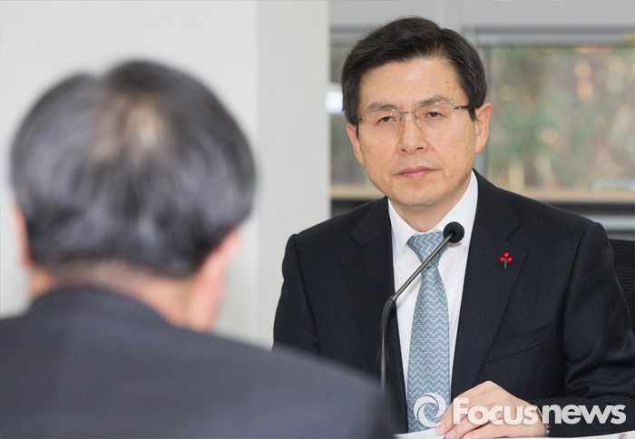 (대전=포커스뉴스) 황교안 국무총리가 11일 대전 유성구 융합기술연구생산센터를 방문, 출연연-중소·중견기업과 간담회에서 이상천 국가과학기술연구회이사장으로부터 보고를 받고 있다.