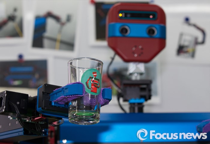 (대전=포커스뉴스) 황교안 국무총리가 11일 대전 유성구 융합기술연구생산센터 내 마젠타로보틱스를 방문, 도장로봇이 소맥 폭탄주제조 시연을 하고 있다.