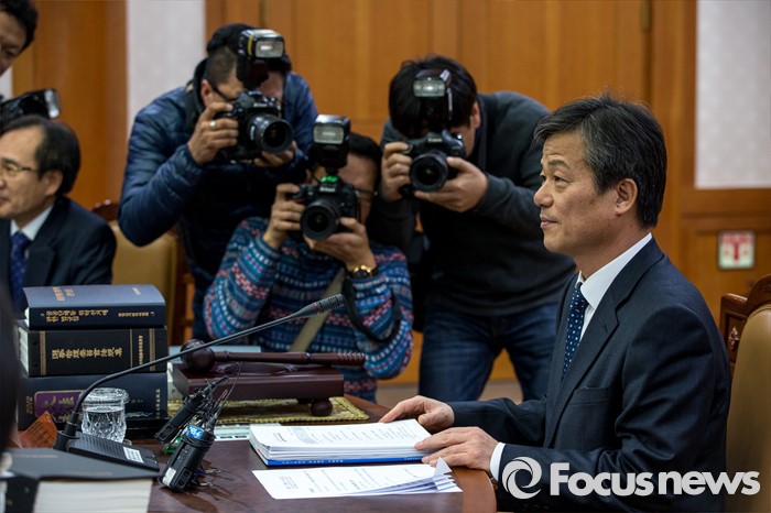 (과천=포커스뉴스) 이인복 중앙선거관리위원회 위원장이 11일 오후 경기도 과천시 중앙선거관리위원회에서 열린 전체회의에 자리해 회의 시작을 기다리고 있다. 이날 이 위원장은 오는 4월 13일 총선 '선거구 실종' 장기화 사태에 따른 대책을 모색할 예정이다.