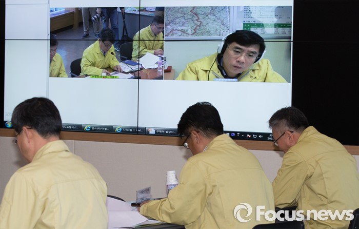 (세종=포커스뉴스) 이동필 농림축산식품부장관이 12일 오전 세종시 농식품부 AI·구제역대책상황실에서 열린 구제역 방역상황 긴급 점검회의에 참석해 이종환 전라북도 축산과장과 영상회의를 하고 있다.