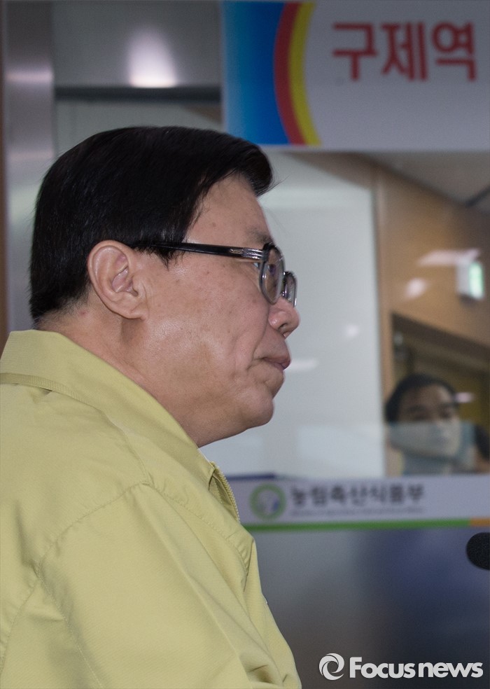 (세종=포커스뉴스) 이동필 농림축산식품부장관이 12일 오전 세종시 농식품부 AI·구제역대책상황실에서 열린 구제역 방역상황 긴급 점검회의에 참석해 이종환 전라북도 축산과장과 영상회의를 갖고 있다.