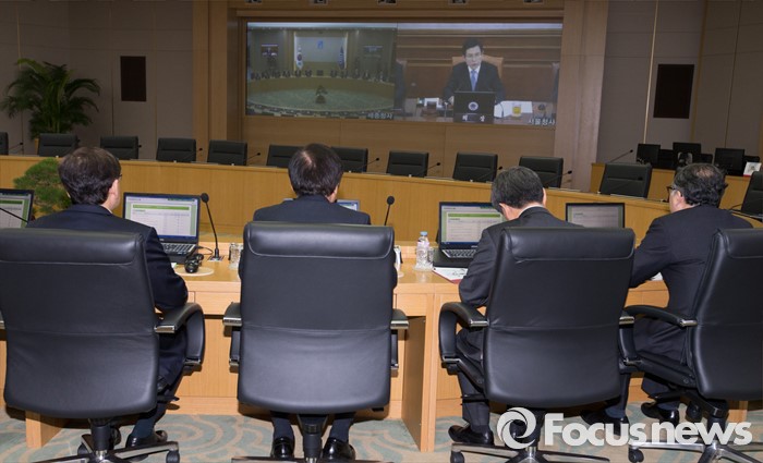 (세종=포커스뉴스) 12일 오전 세종시 정부세종청사 국무회의장에서 열린 서울-세종 영상 국무회의에 참석한 국무위원들이 황교안 총리의 발언을 경청하고 있다.