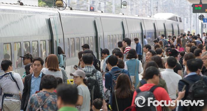 보다 자세한 사항은 레츠코레일 홈페이지를 참조하거나 철도고객센터(1544-7788, 1588-7788)에서 확인할 수 있다.(서울=포커스뉴스) 추석 연휴를 하루 앞둔 25일 오전 서울역에서 귀성객들이 열차에 탑승하고 있다. 2015.09.25 김인철 기자