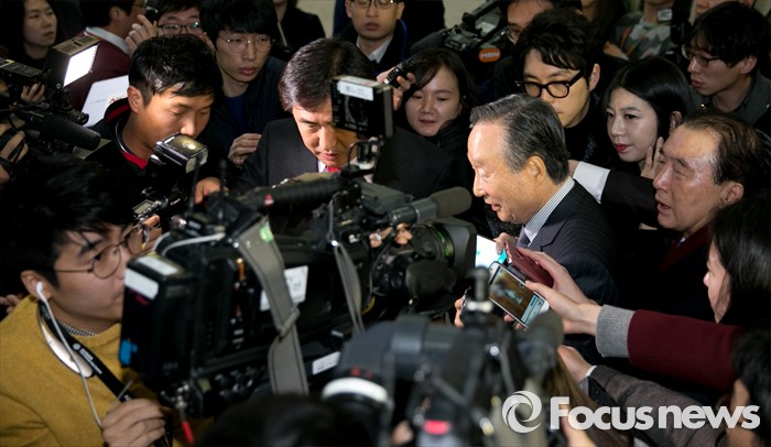(서울=포커스뉴스) 권노갑 더불어민주당 상임고문이 12일 오전 서울 여의도 국회 정론관에서 탈당 기자회견을 마친 뒤 이동하고 있다.