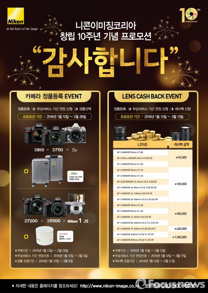 (서울=포커스뉴스) 니콘이미징코리아는 한국지사 창립 10주년을 기념해 ‘감사합니다’ 이벤트를 진행한다고 12일 밝혔다.