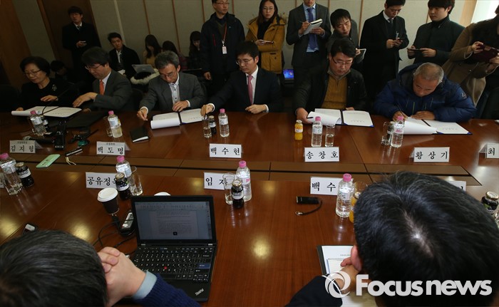 | △ 서명하는 교섭단 대표자들 |