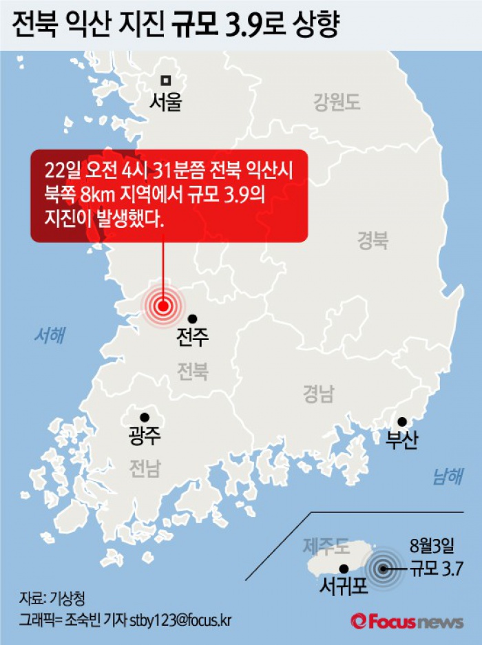 | △ [그래픽] 전북 익산 지진 규모 3.9로 상향 |