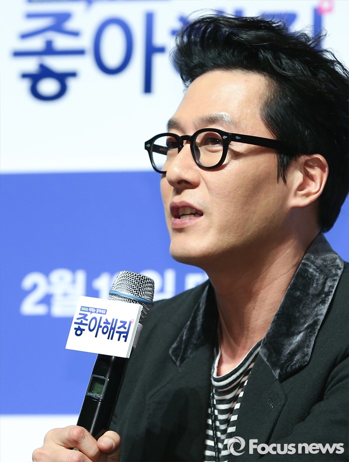 (서울=포커스뉴스) 12일 오전 서울 강남구 압구정 CGV에서 열린 영화 '좋아해줘' 제작보고회에 참석한 배우 김주혁이 취재진의 질문에 답하고 있다.