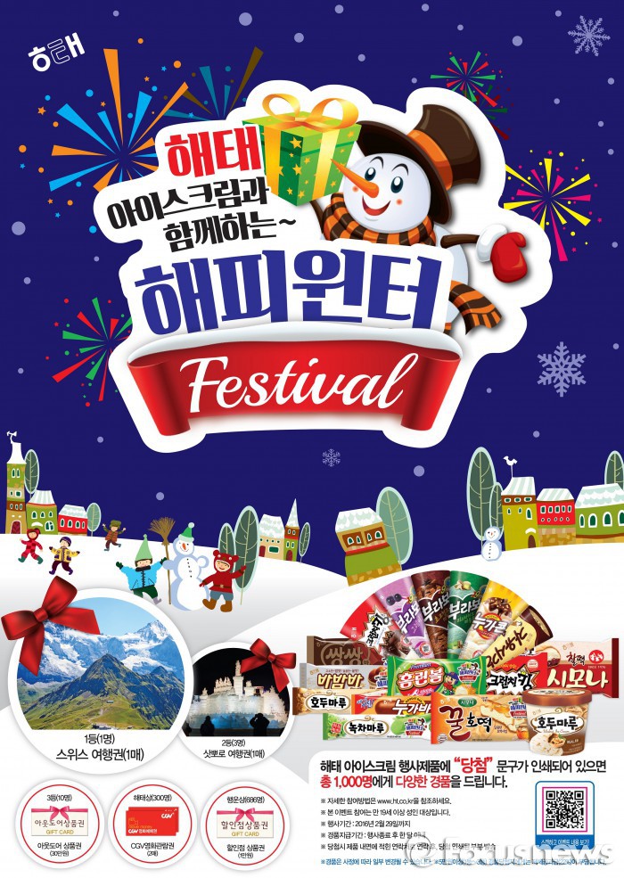 (서울=포커스뉴스) 해태제과는 오는 2월29일까지 '해피 윈터 페스티벌' 경품 행사를 진행한다고 12일 밝혔다.