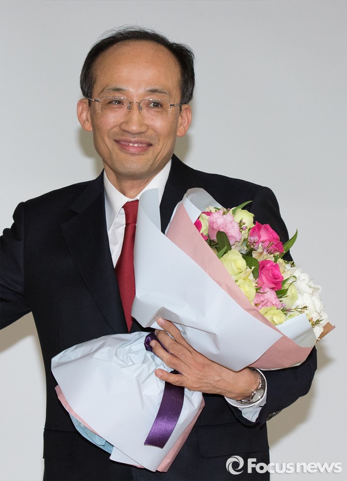 (세종=포커스뉴스) 추경호 국무조정실장이 12일 오후 세종시 정부세종청사 1동 대강당에서 열린 이임식에서 꽃다발을 들고 미소를 보이고 있다.