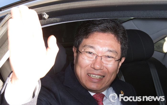 (세종=포커스뉴스) 윤상직 산업통상자원부장관이 12일 오후 세종시 정부세종청사 산업통상자원부 대강당에서 열린 이임식을 마치고 손 인사를 하며 청사를 떠나고 있다.