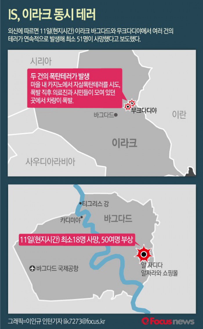 (서울=포커스뉴스) 외신에 따르면 11일(현지시간) 이라크 바그다드와 무크다디야에서 여러 건의