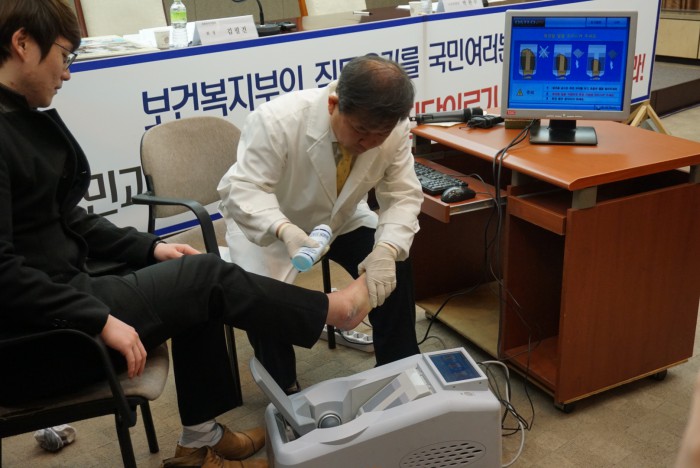 이날 김 회장은 골밀도측정기를 직접 시연하는 모습까지 보였다. 이는 한의사들도 충분히 의료기기를 사용할 수 있다는 것을 보여주기 위한 것이다.