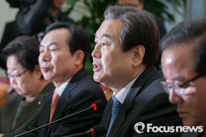 (서울=포커스뉴스) 김무성(오른쪽 두번째) 새누리당 대표가 13일 오전 서울 여의도 국회에서 열린 최고중진연석회의에 참석해 모두발언하고 있다.