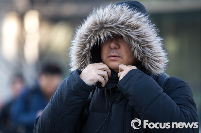(서울=포커스뉴스) 계속되는 맹추위로 전국이 꽁꽁 얼어붙은 13일 오전 서울 종로구 세종로 사거리에서 한 시민이 옷깃을 여미고 있다. 현재 서울 기온은 영하 9도를 기록하고 있으며 충남과 호남 서해안 지역에는 대설주의보가 내려졌다.