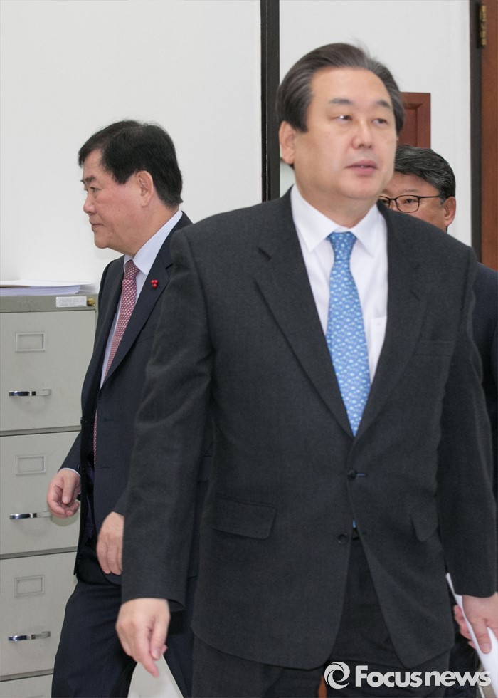 (서울=포커스뉴스) 최경환(왼쪽) 전 경제부총리 겸 기획재정부 장관이 13일 오전 서울 여의도 국회 새누리당 대표최고위원실에서 김무성 대표와 면담을 마친 뒤, 밖으로 나가고 있다.