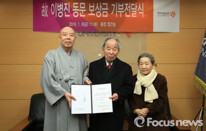 (서울=포커스뉴스) 동국대학교는 지난 8일 한국전쟁 민간인 희생자 유족 이병윤씨가 정부로부터 받은 보상금 전액과 가족들이 모은 돈을 합쳐 총 6000만원을 동국대에 전달했다고 13일 밝혔다.