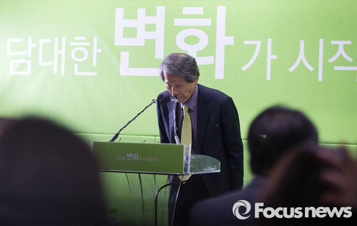 (서울=포커스뉴스) 한상진 국민의당 창당준비위원장이 오전 10시, 서울 마포구 국민의당 당사 브리핑룸에서 '국민의당' 창당준비위원회 인선안 발표에 앞서 기자들에게 인사 하고 있다.