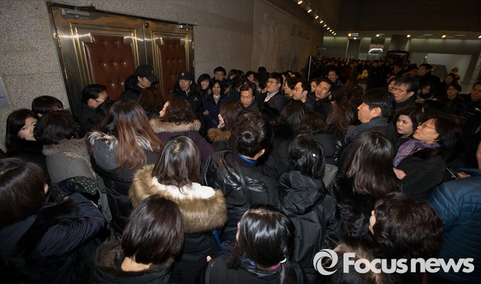 출입구 막는 회원들
