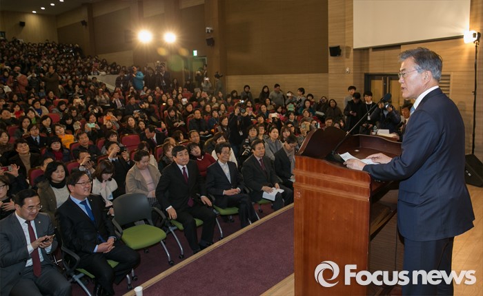 (서울=포커스뉴스) 13일 오후 서울 여의도 국회 의원회관에서 더불어민주당 누리과정특위 주최로 열린 임박한 보육대란, 어떻게 해결할 것인가 긴급 현안토론회에 참석한 문재인 대표가 인사말을 하고 있다.