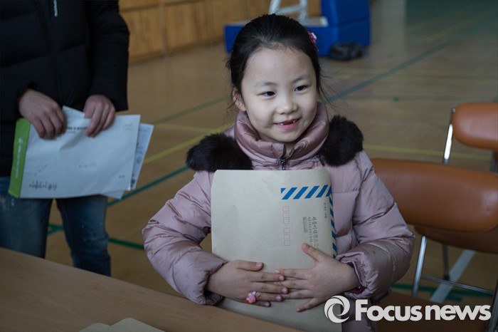 | △ 입학 안내서 받고 웃고있는 예비 초등학생 |