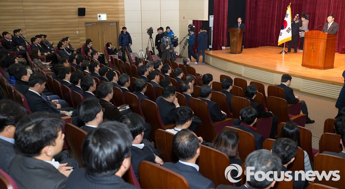 (세종=포커스뉴스) 주형환 신임 산업통상자원부장관이 13일 오후 세종시 정부세종청사 산업부 대강당에서 열린 취임식에 참석해 취임사를 하고 있다.
