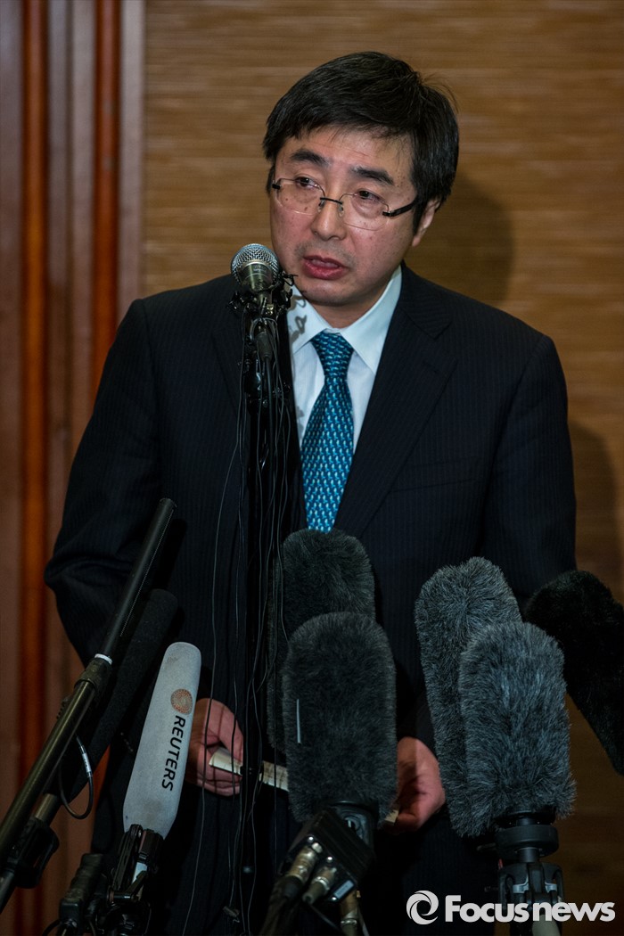 (서울=포커스뉴스) 이시카네 기미히로 일본 아시아대양주국장이 13일 오후 서울 중구 롯데호텔에서 열린 '한미일 6자회담 수석대표 긴급회동'에 자리해 북한 4차 핵실험 강행 관련 대북제재 방안 논의를 마친 뒤 입장발표를 하고 있다.