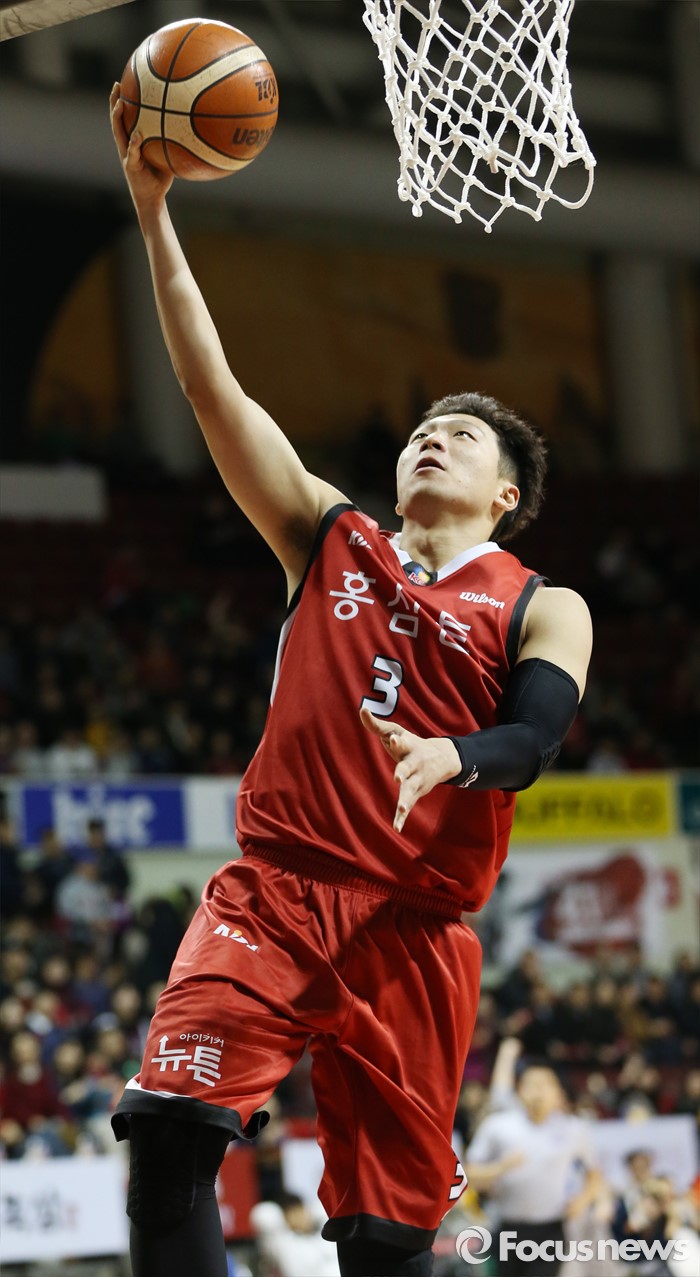 (안양=포커스뉴스) 13일 안양실내체육관에서 열린 2015-2016 프로농구 KGC-KCC 경기에서 KGC 이정현이 레이업슛을 시도하고 있다.