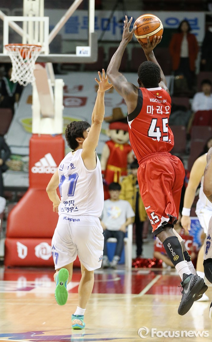 (안양=포커스뉴스) 13일 안양실내체육관에서 열린 2015-2016 프로농구 KGC-KCC 경기에서 KCC KGC 마리오 리틀이 경기 종료 직전 하프라인 근처에서 슛을 쏘고 있다.