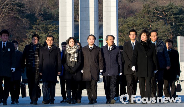 (서울=포커스뉴스) 14일 오전 서울 강북구 국립 4.19 민주묘지를 찾은 한상진 국민의당 창당준비위원장과 안철수 인재영입위원장이 참배 후 발걸음을 옮기고 있다.