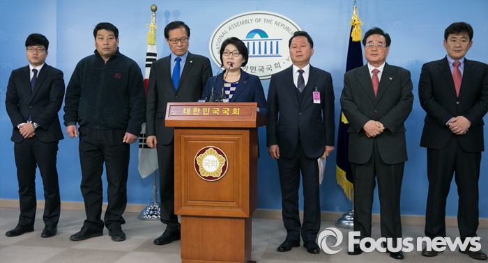 (서울=포커스뉴스) 안귀옥 더불어민주당 인천 남구을 지역위원장과 20대 총선 인천 남구갑 총선 출마를 준비 중인 김충래 변호사 등이 14일 오전 서울 여의도 국회 정론관에서 탈당 및 국민의당 합류 기자회견을 하고 있다.