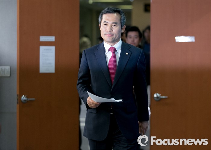 (서울=포커스뉴스) 김승남 더불어민주당 의원이 14일 오전 서울 여의도 국회 정론관에서 탈당 기자회견을 위해 입장하고 있다.