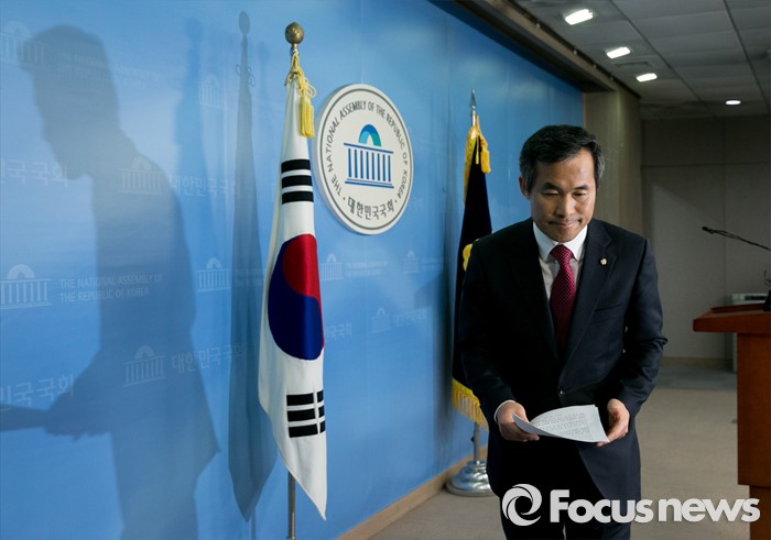 (서울=포커스뉴스) 김승남 더불어민주당 의원이 14일 오전 서울 여의도 국회 정론관에서 탈당 기자회견을 마친 뒤 퇴장하고 있다.
