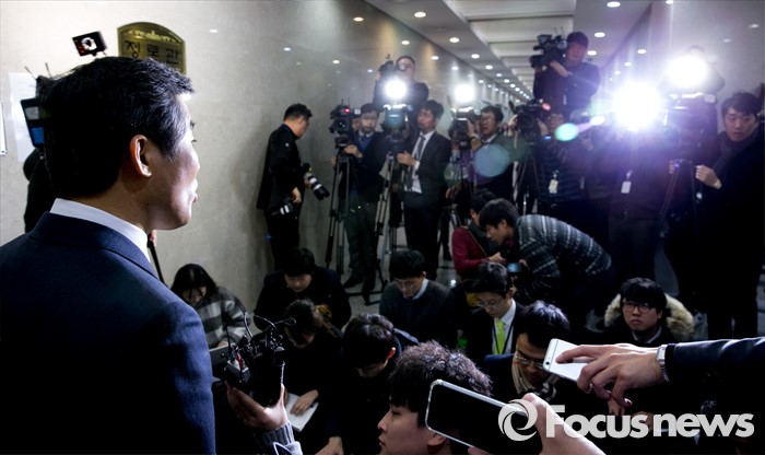 (서울=포커스뉴스) 김승남 더불어민주당 의원이 14일 오전 서울 여의도 국회 정론관에서 탈당 기자회견을 마친 뒤 취재진 질문에 답하고 있다.