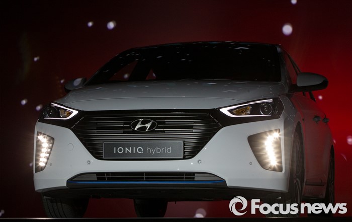 (서울=포커스뉴스) 현대자동차가 14일 오전 서울 중구 동대문디자인플라자에서 하이브리드 자동차 '아이오닉'을 선보이고 있다.