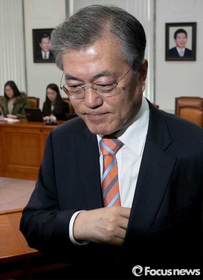(서울=포커스뉴스) 문재인 더불어민주당 대표가 14일 오전 서울 여의도 국회에서 인재영입 기자회견을 마친 뒤 박근혜 대통령 대국민 담화 관련 취재진 질문에 답한 후 퇴장하고 있다.