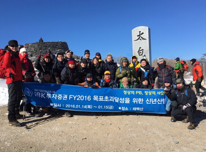 (서울=포커스뉴스) IBK투자증권 WM사업부문 임직원들이 14일 강원도 태백산에 올라 새해 의지를 다졌다.