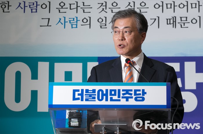 (서울=포커스뉴스) 문재인 더불어민주당 대표가 14일 오후 서울 여의도 국회에서 지난 2012년 대선 당시 박근혜 대통령의 경제민주화 공약을 만든 김종인 전 의원을 조기선대위원장으로 영입한 것과 관련 기자간담회를 하고 있다.